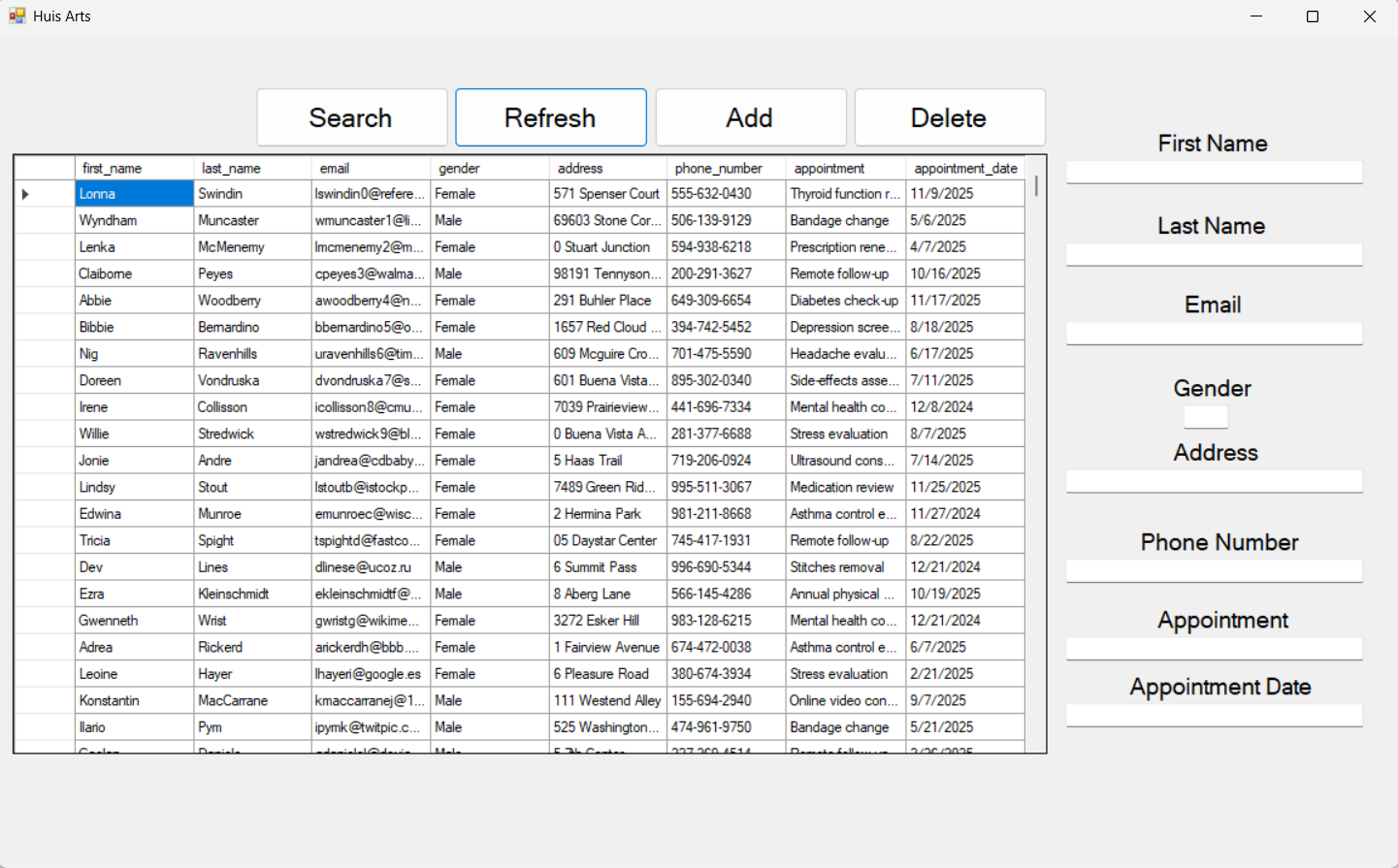 Dit project is ook gemaakt met CRUD-functies. Ik heb geleerd hoe je tekst in de DataGridView kunt aanpassen. Het heeft bovendien dezelfde functies als de filmapplicatie, maar dan uitgebreider.