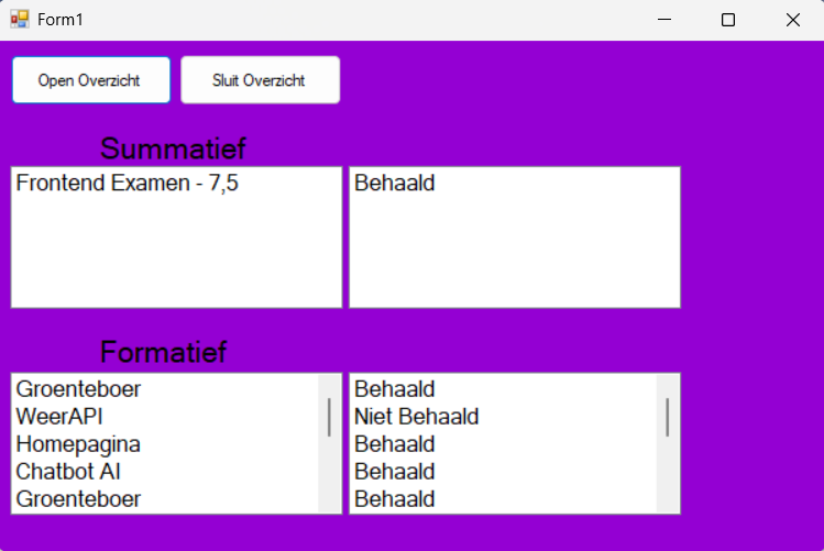 Dit is een dashboardproject waarmee je statistieken van je schoolresultaten kunt bekijken. Ik heb hierbij ook meer geleerd over het maken van connecties tussen MySQL en C#.